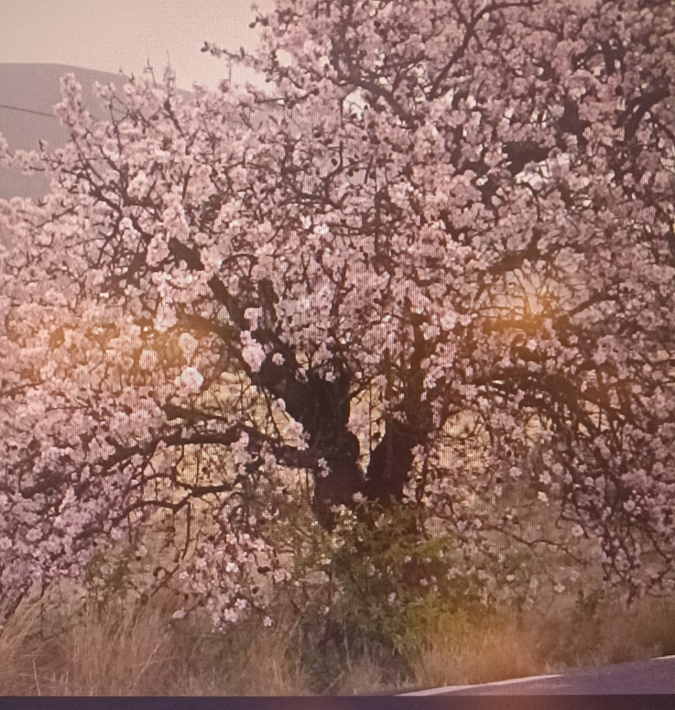 Now that spring is on the way, the almond trees are starting to burst into bloom. Ours are always a wee bit behind the ones lower down in the valley where it’s a degree or two warmer, but the blossom is just so fabulous to see. You can book tours to see vast orchards of almonds in bloom, all along the Hondon valley and beyond. Makes for a lovely day out, though we’re very happy to have our own small show at home!