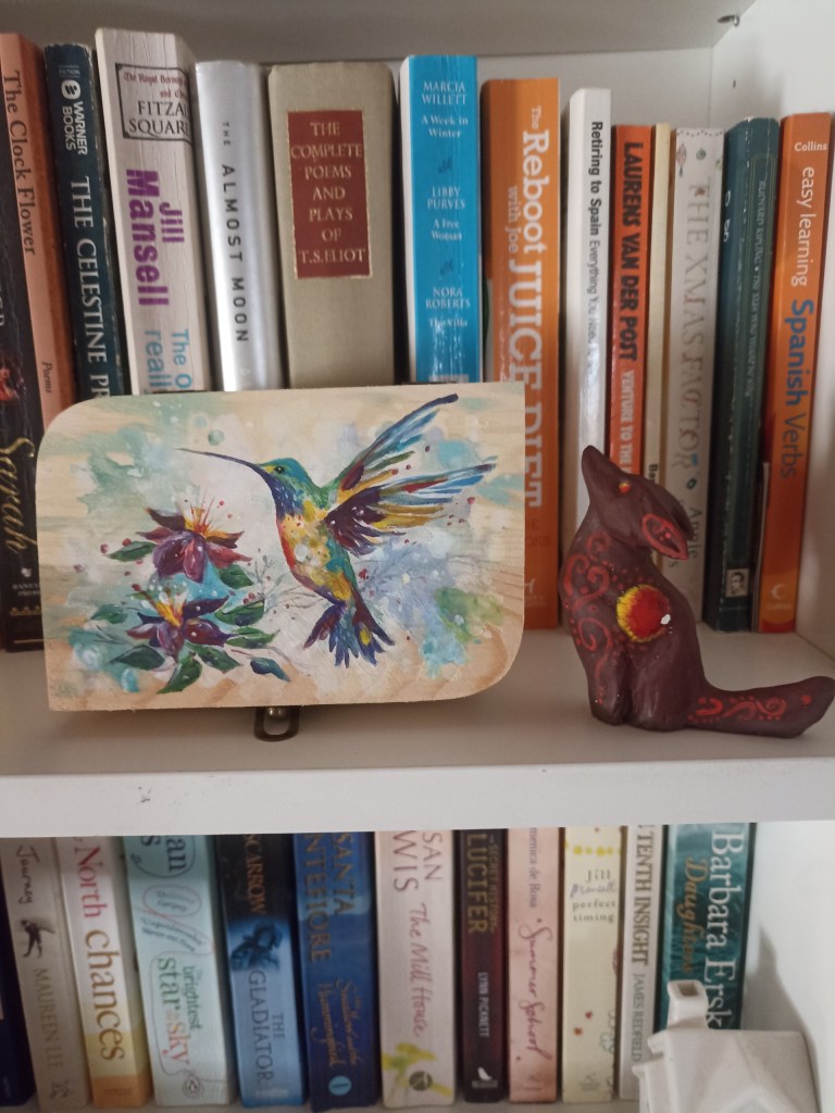 This experience with Workaway has been absolutely brilliant for us, it exceeded our expectations by a very long way. We just LOVED having Ariane and Edgar to stay with us, utterly delightful people who were so easy to get on with. Before they left, they gave us gifts they had made for us. We all share a love and fascination for the stars, and Edgar made us a little clay dog gazing up to the heavens, so beautiful. Ariane had bought a little plain wooden box from the todo shop and she hand-painted a fabulous humming bird on it. Absolutely exquisite gifts, both of them, which we will treasure forever.