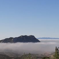 Last week we were toying with the idea of taking off the pool winter cover and doing a bit of hoovering and topping up. I’m very glad we decided to leave it for another week as goodness knows what might have ended up in the water. It looks like normal service should be resumed by Friday with temperatures around the low 30s so I think that really will be summer rolling in.They do say here in Spain that summer doesn’t start until the 40th of May (think about it!) and we’re about there now so hopefully the rains we have had will make a difference to the reservoirs and we can start to enjoy a bit more of the blue skies, sunshine and pool we like so much. In the meantime, I took a photo of how dense this evening’s fog is – we can’t see as far as the bottom of our driveway, nor can we even see down into the walled garden. It’s like being in “The Langoliers”!