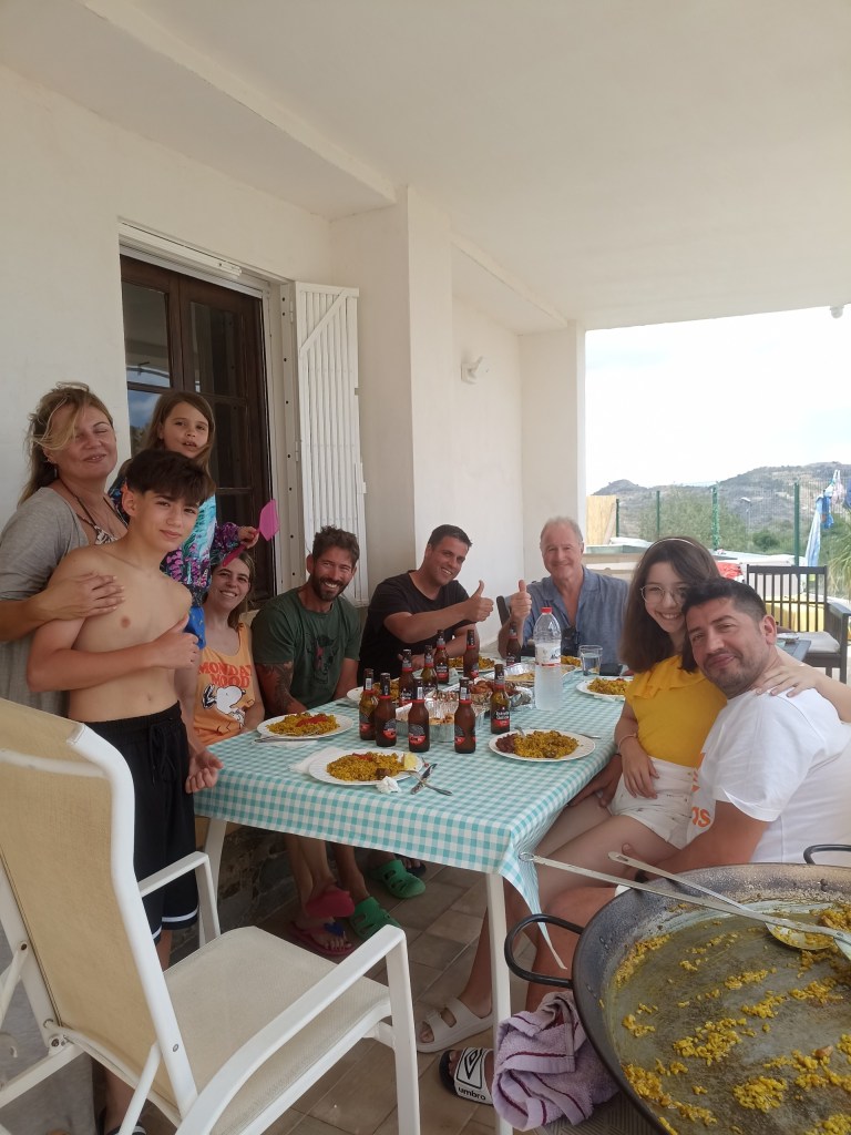 This one was the party at Alfredo’s house, (the paella didn’t last long!) the photo below was at our house, just before they all arrived, including bringing the big karaoke machine!
