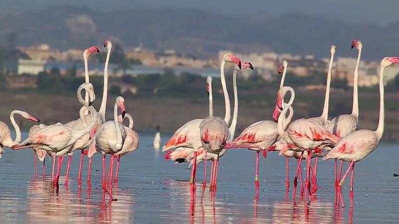 On the way back from Elche we could see the salt mounds near Torrevieja. The salt is extracted from the low lagoon waters and is left to dry as the water evaporates. The mounds are more like hills, massive! You can have a tour round to see how the salt is extracted and what they do with it, it’s fascinating. The lakes,or lagoons, also host something else…flamingos! The water is tinged pink, as are the birds.