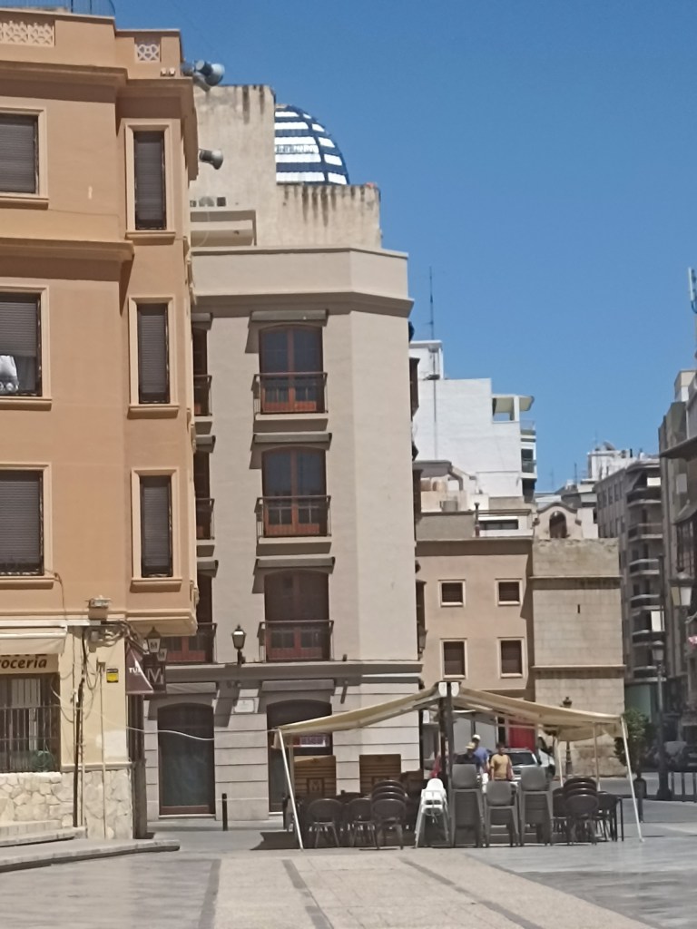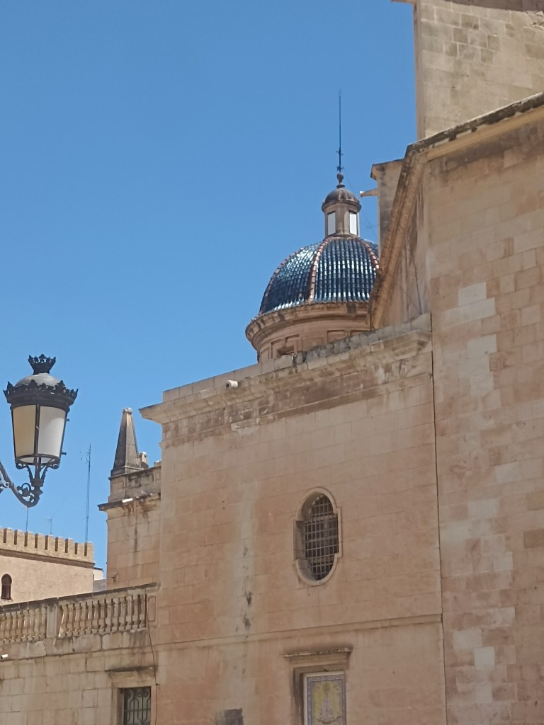 As well as seeking out doors, I make a point of looking up wherever we go – hence the photo of the cathedral dome. Across the square from the cathedral I happened to spot another little blue and white striped dome just peeping out from behind some tall buildings. Got no idea what it belonged to but I liked the look of it!