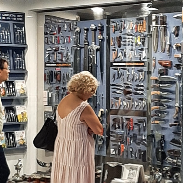 Something else I didn’t know is that Albacete is famous for its knife production, from pre-historic times right up to today. They’re so proud of this that there’s a whole museum in a lovely old building, devoted to the production of knives in all shapes and forms, from tiny wee penknives to huge big machetes. We learned about the history of knife-making in the area and it was very interesting. Generally knives are also sold openly in Spain, they are various sizes and shapes, and you don’t need a licence. There doesn’t seem to be any knife crime as there is in the UK, or, particularly, in London. Makes you wonder, doesn’t it?