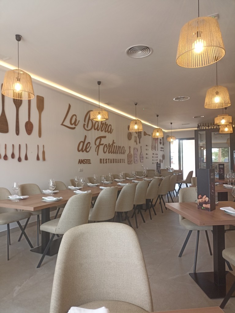 Now you know that we are very fond of eating out, and with the prices in Spain so low we tend to indulge a couple of times every week. We do quite often stick to tried and tested where we know we’ll get great food at great value, but it’s also a good idea to try new places. So, somewhere that’s not exactly new, but has moved a little out of town is the Barra de Fortuna. They have renovated and completely overhauled their new premises and, I have to say, the restaurant is really beautiful.
