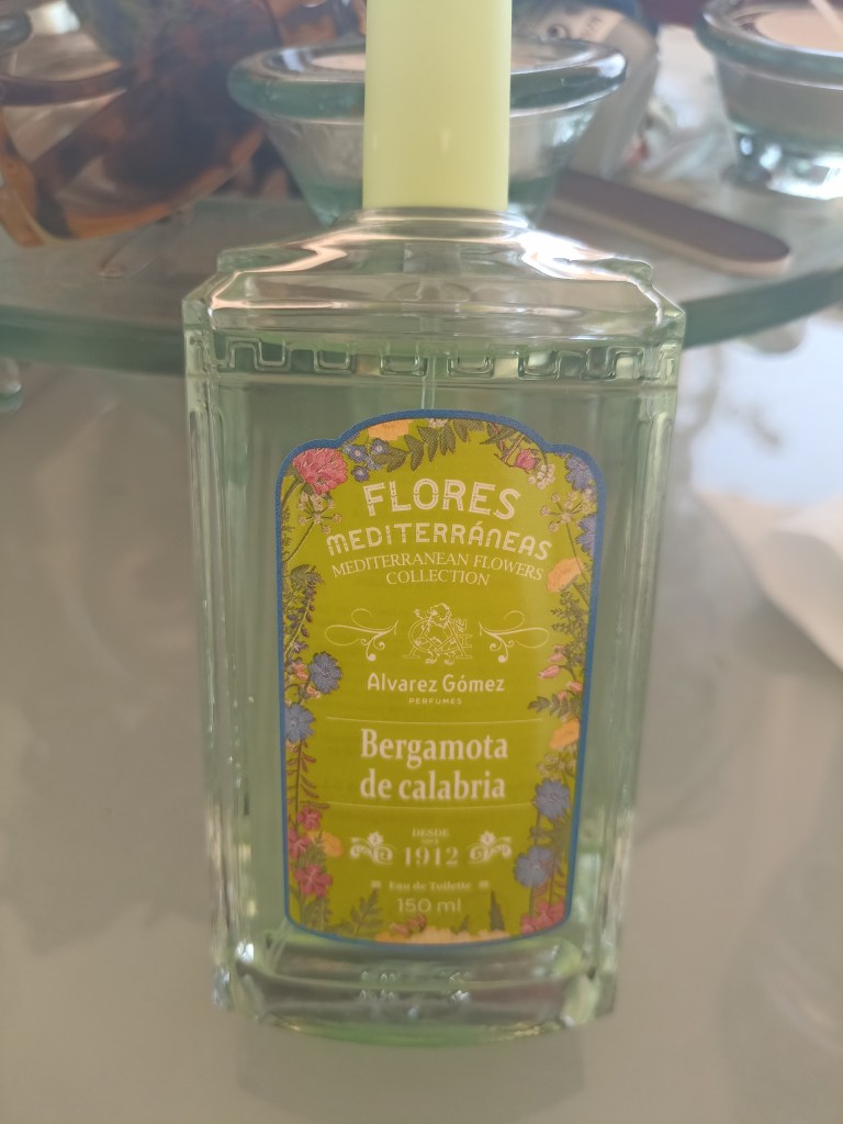 So, other than books my passions are perfume and makeup. Spain produces some unbelieveably good perfumes, at prices to suit every budget. For the summer I like fresh, citrus scents, and I bought this one recently, it smells of bergamot, cut lemons and orange blossom, very heady! It actually looks a bit like a very small version of a bottle of gin – but it’s not!