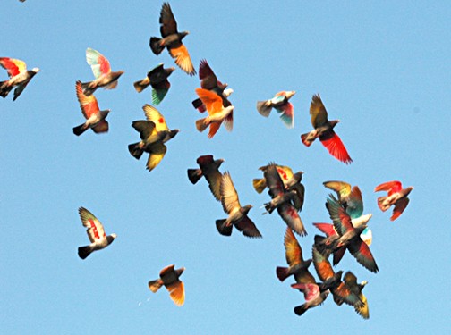 Oh, here’s another bit of colour and brightness at this time of year, which I thought the EU had done away with? Painted pigeons are what I’m talking about – the people who race pigeons paint their feathers so they’re easier to identify. As far as I know it doesn’t harm them at all, and I think they look fabulous!